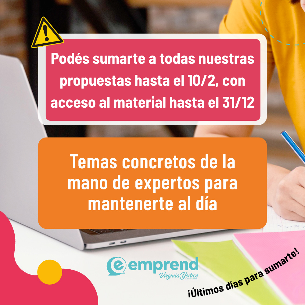 Exacto. Queremos que Emprend sea TU opción para mantenerte actualizado/a. Por ende todos los meses podes hacer 1,2,3 propuestas, que promedian las dos horas cada una.